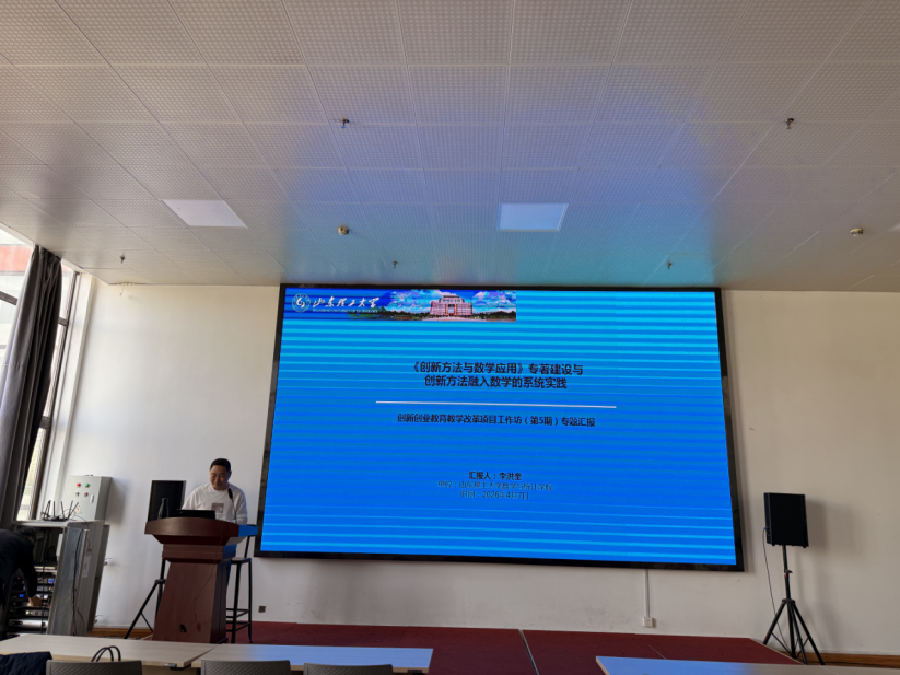 本次工作坊特邀数学与统计学院李洪奎老师围绕《创新方法与数学应用》专著建设与创新方法融入数学的一体化实践作专题汇报,系统梳理了创新方法进入数学语境的基本路径,重点介绍了从课程积累、研究原型到学生项目、竞赛成果与专著定稿的整体思路,并结合多项式功能分析、自适应分割牛顿法、混合储能系统矛盾分析以及学生创新项目等案例,展示了创新方法在专业课程建设、科研训练和成果转化中的实践成效。李老师的分享为在场教师提供了将创新思维自然嵌入基础学科教学的可复制经验。